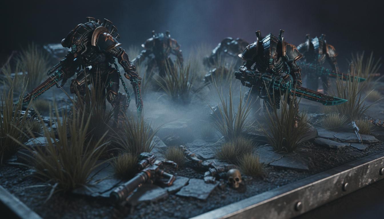 Build rosters with points tracking for Grimdark Future, Firefight, and other systems. Drag, duplicate, and tune loadouts in seconds.